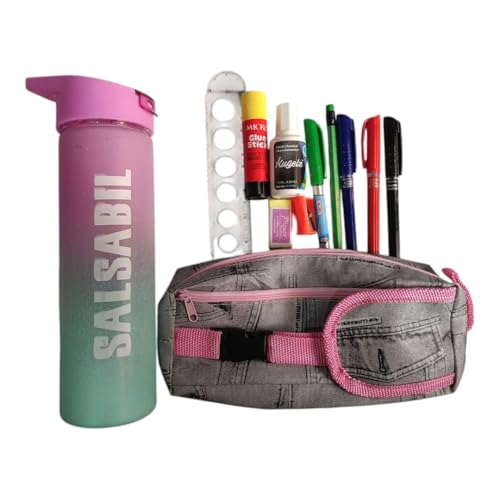 - مجموعة متكاملة: تتضمن حقيبة أقلام عملية مع زجاجة مياه وإجمالي 12 قطعة من المستلزمات المدرسية