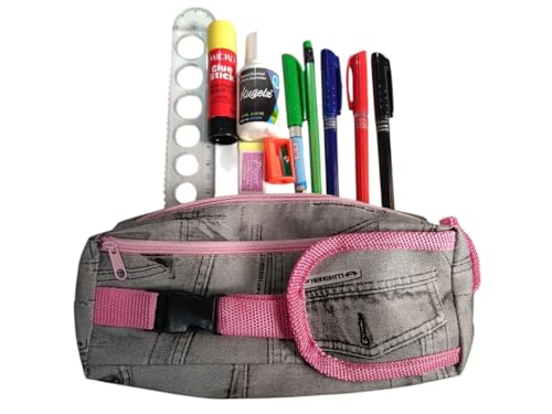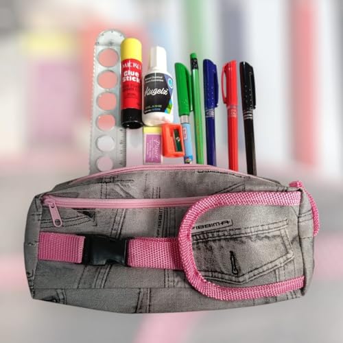 - تصميم مبتكر: حقيبة أقلام من الجينز بحزام وردي مع مساحة تخزين واسعة للأقلام والأدوات المكتبية