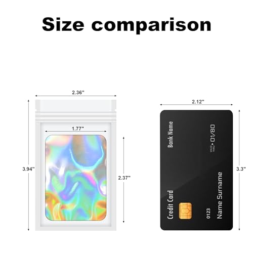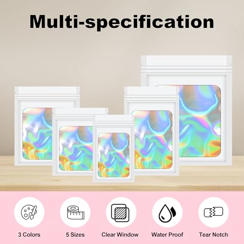- 【المقاس والكمية】هناك مقاسات متعددة للاختيار من بينها، فالعبوة تتضمن 100 كيس هولوجرافي قابل لإعادة الإغلاق، ما يضمن حصولك على كمية كافية لاحتياجاتك اليومية.