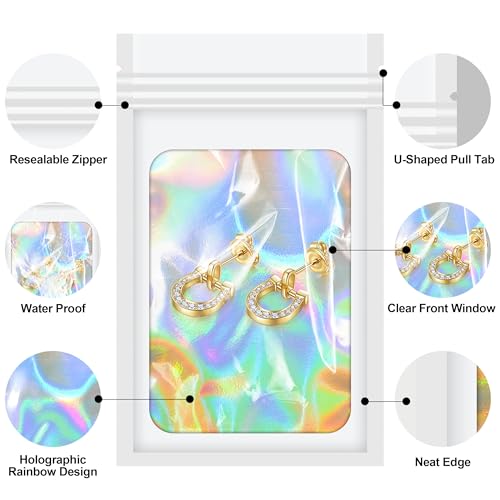- 【لون قوس قزح هولوغرافي】تتميز أكياس الفويل المزودة بسوستة والخاصة بنا بتصميم هولوجرافي قوس قزحي في الخلف، مع واجهة شفافة لعرض المنتج بوضوح تام. تظهر الألوان القوس قزحية المذهلة بسهولة في الأماكن الداخلية دون الحاجة إلى إضاءة إضافية.