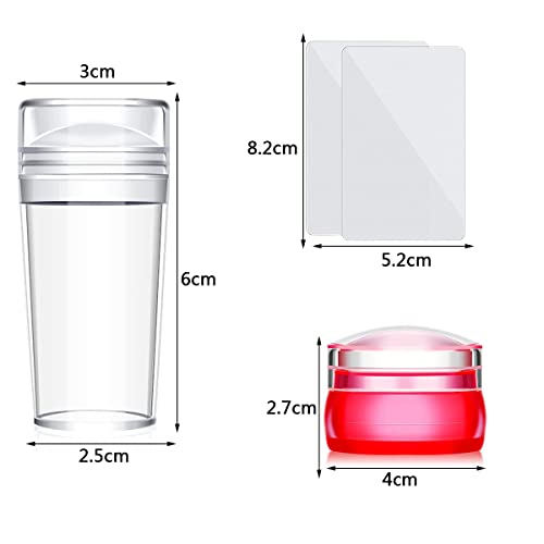 - 【محتويات العبوة】تتضمن مجموعة ختم فن الأظافر 2 قالب و2 مكشطة. يبلغ مقاس قالب فن الأظافر الأسطواني تقريبًا 3 سم × 6 سم. يبلغ مقاس ختم فن الأظافر الهلامي القصير تقريبًا 2.8 سم × 3.8 سم. يبلغ قياس مقشطة فن الأظافر تقريبًا 5 سم × 8.2 سم.