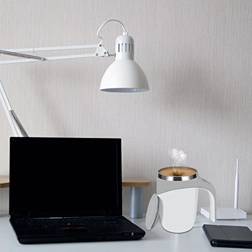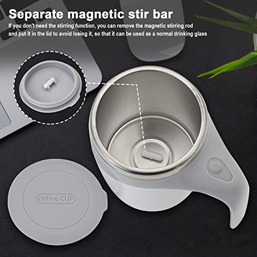 JELOVA - كوب قهوة كهربائي مغناطيسي من جيلوفا، خلط اوتوماتيكي مضحك، سفر الستانلس ستيل للشوكولاتة والحليب والشاي والمكتب والمنزل والمطبخ، 12 اونصة/350 مل، ابيض، ستانلس وسيليكون