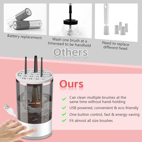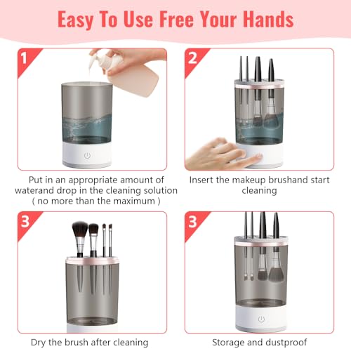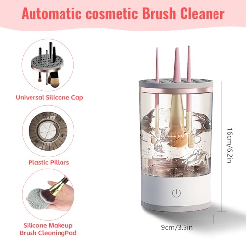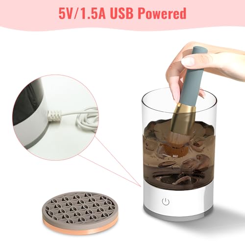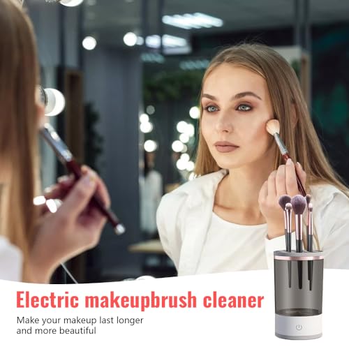 Jemey - منظف فرش المكياج الكهربائي من جيمي، منظف فرش المكياج 2 في 1 مع حامل مجفف للفرشاة، قابل لاعادة الشحن بمنفذ USB، منظف مزج فرش المكياج الدوار التلقائي لجميع فرش المكياج