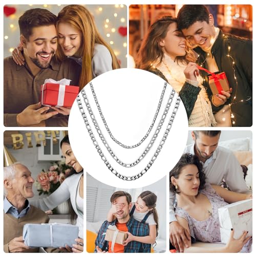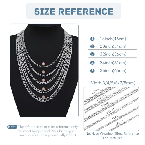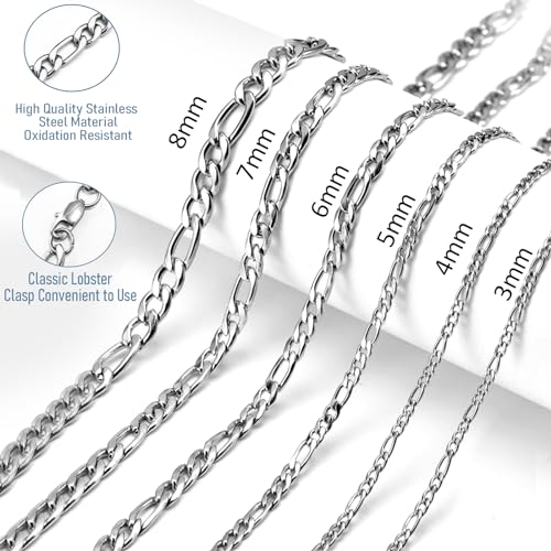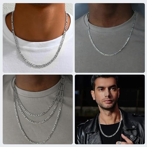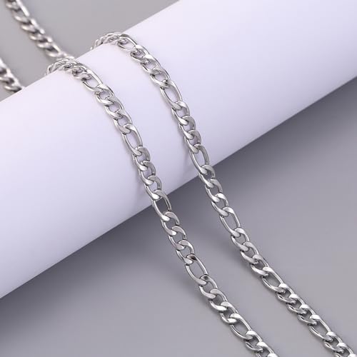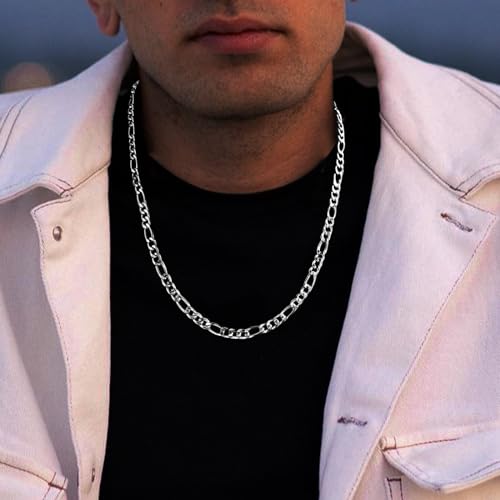 JENCVNL - قلادة فيجارو فضية للرجال من الفولاذ المقاوم للصدأ سلسلة فضية أو هيب هوب أو قلادة أو مجوهرات للرجال والأولاد من JENCVNL، 3/4/5/6/7/8 ملم، 46/51/56/61/66 سم