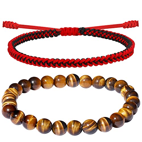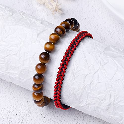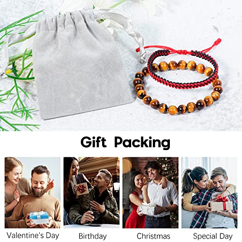 JENDEAR SHINE - طقم اساور للرجال من قطعتين جيندير شاين سوار منسوج يدويا وسوار العقيق الطبيعي هدية عيد الميلاد والعطلات والصداقة