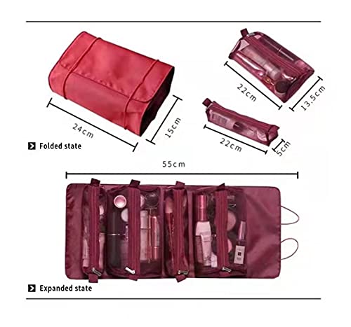 JENIGH JEWEL - شنطة مكياج 4 في 1 قابلة للتعليق للسفر قابلة للطي بسعة كبيرة للسفر بـ4 مساحات تخزين من جينغ جويل, أحمر، نايلون