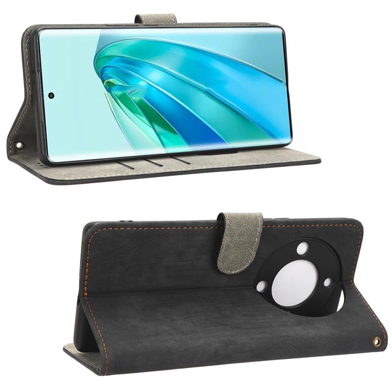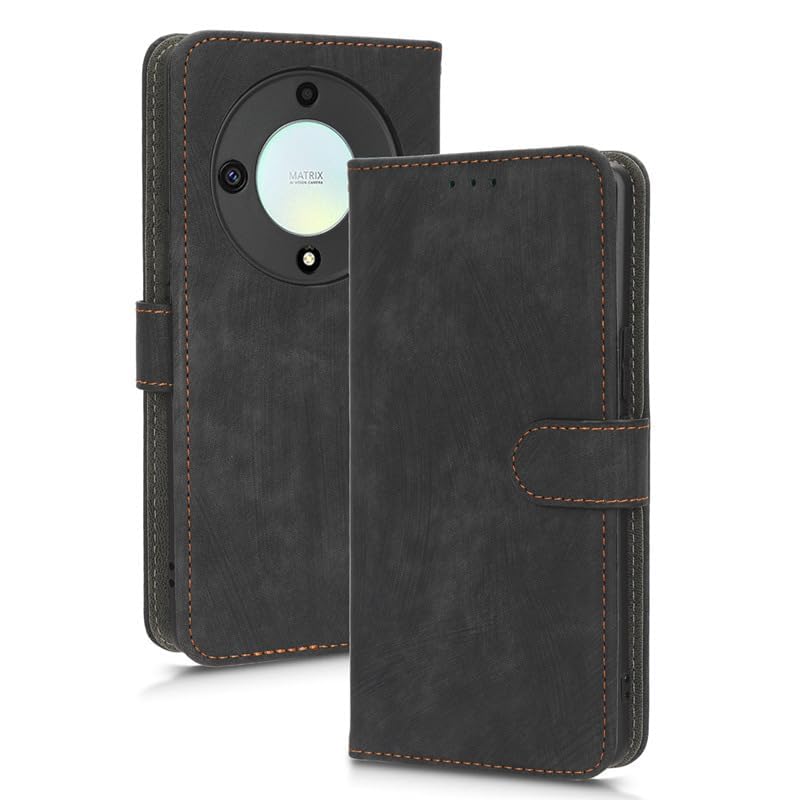 JENKEM - جراب حماية من جينكيم متوافق مع هونر X9A شبكة الجيل الخامس 5G - قابل للطي الجلد الصناعي بتصميم رترو وفتحات بطاقات متعددة جلدي ماجيك 5 لايت لون أسود