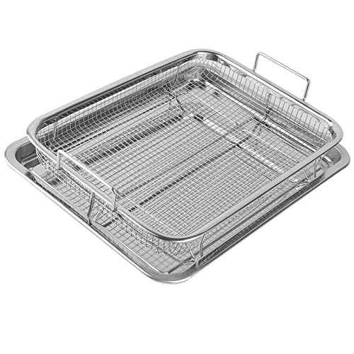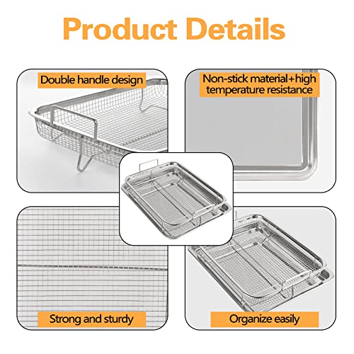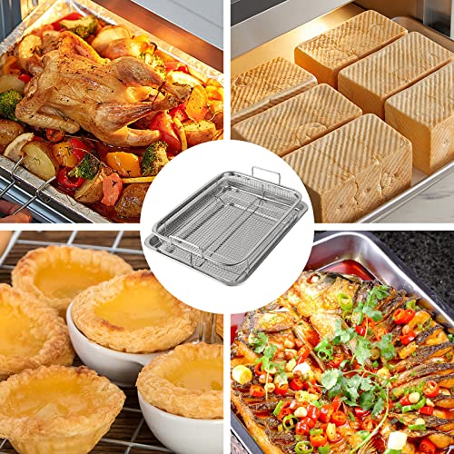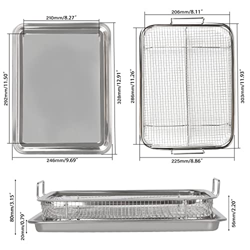 - 【جودة عالية】مجموعة صواني المقرمشات مصنوعة من الفولاذ المقاوم للصدأ 201، وهي مادة متينة للغاية وآمنة غذائيًا وغير سامة وآمنة للغسل في غسالة الأطباق.