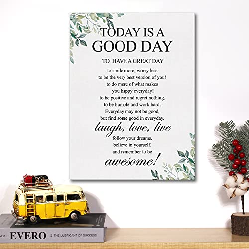 JerLoe - جيروي لوحة فنية جدارية من القماش مطبوع عليها عبارة «Inspirational Today is a Good Day» قماشية مطبوعة لديكور حائط المنزل هدية مؤطرة مقاس 12 × 15 انش متعدد