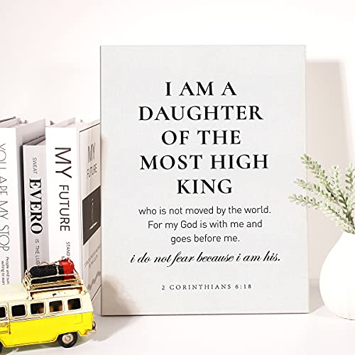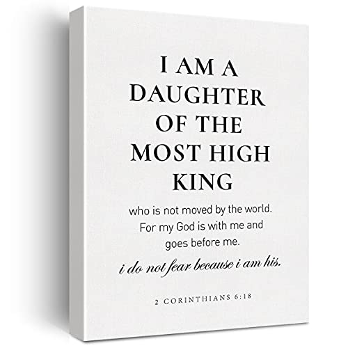 JerLoe - جيروي لوحة فنية جدارية من القماش المسيحي 2 كورنثوس 6:18 I am the Daughter of a King لوحة ايجابية لوحة دينية ديكور جدار المنزل مؤطر هدية الحضانة للفتيات 12 × 15 انش