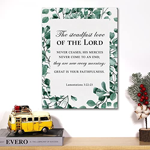 JerLoe - جيروي لوحة فنية جدارية من القماش المسيحي Great is Your Faithfulness Lamentations 3:22-23 لوحة قماشية مطبوعة كتاب ايجابي لوحة قماشية للمنزل وغرفة النوم وديكور الحائط هدية مؤطرة 12 × 15 انش