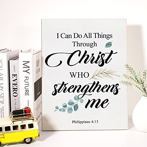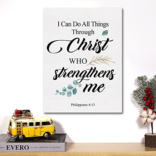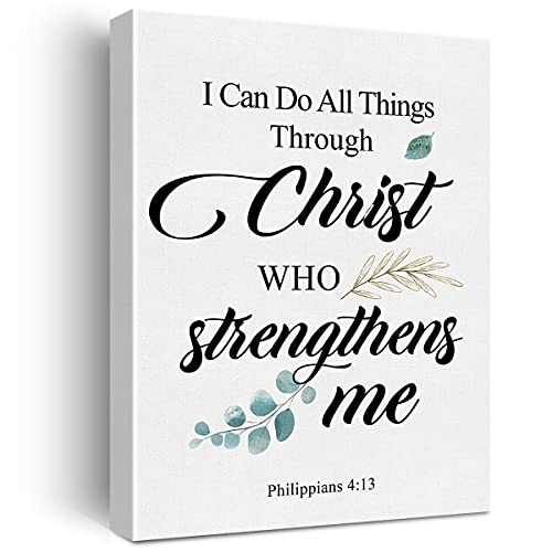 JerLoe - لوحة فنية جدارية من القماش بتصميم ديني بعبارة I Can Do all Things Through Christ الإيجابي من جيروي، لوحة قماشية دينية ديكور جدار المنزل هدية مؤطرة 29 × 38 سم