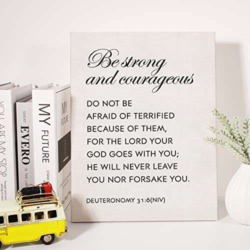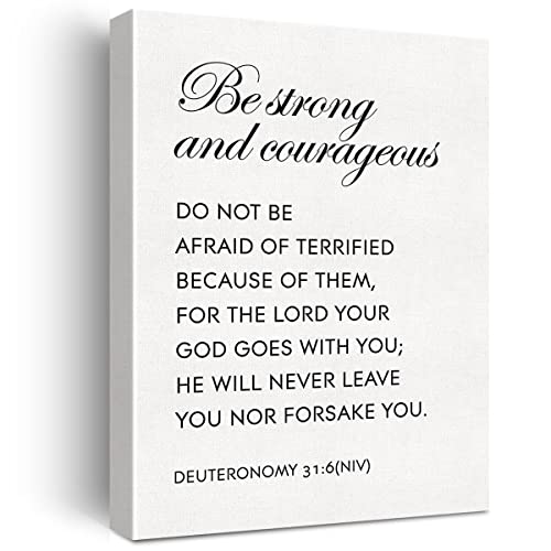 JerLoe - لوحة فنية جدارية من القماش بتصميم تحفيزي مسيحي بعبارة Be Strong and Courageous Deuteronomy 31:6 NIV من ديكور حائط للمنزل بإطار 29 × 38 سم أبيض