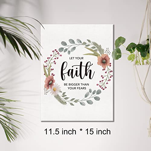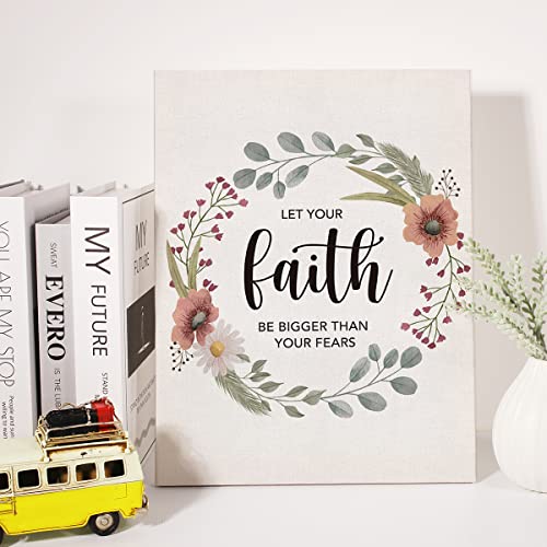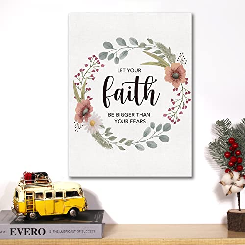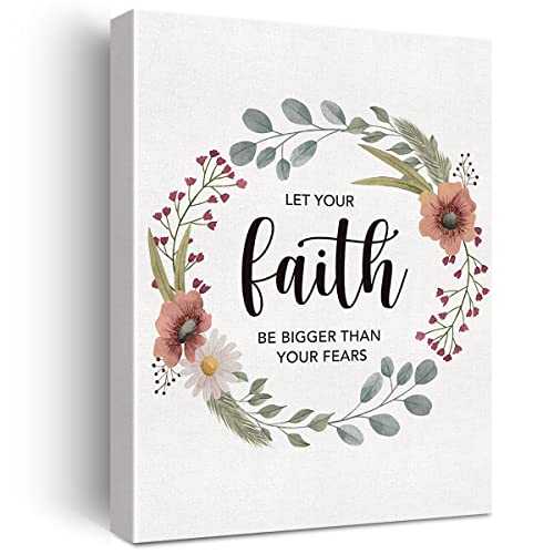 JerLoe - لوحة فنية جدارية من القماش التحفيزي للدين المسيحي «Let Your Faith be Bigger Than Your Fears» لوحة قماشية مطبوعة للكتاب المقدس لديكور حائط المنزل مؤطرة بالزهور من جيروي، مقاس 30 × 38 سم