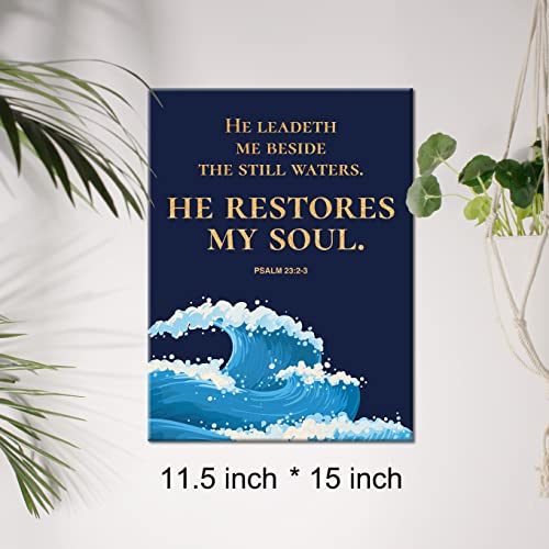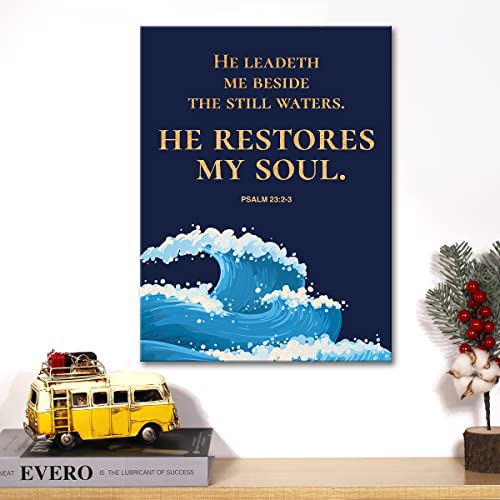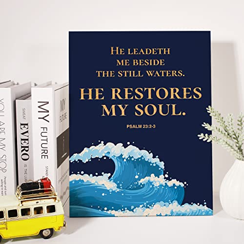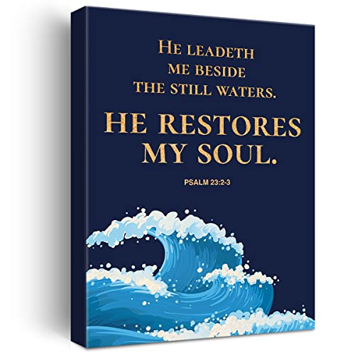 JerLoe - لوحة فنية جدارية من الفويل الذهبي المسيحي عبارة «He Leadeth Me Beside Still Waters» قماشية مؤطرة لديكور المنزل هدايا 12 × 15 انش