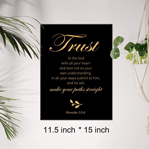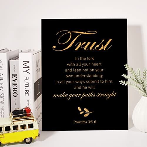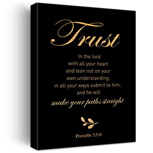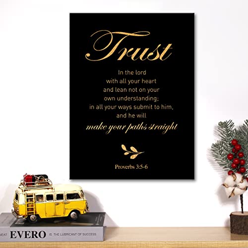 JerLoe - جيروي لوحة فنية جدارية من قماش الفويل الذهبي المسيحي بطبعة «Trust in the Lord With All Your Heart» مؤطرة، لوحة فنية فنية لديكور المنزل، هدايا 12 × 15 انش