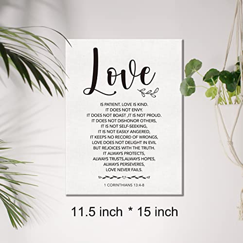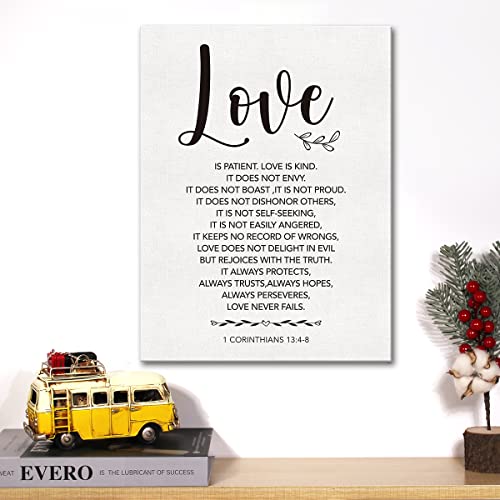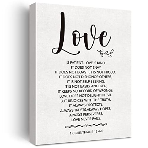 JerLoe - لوحة فنية جدارية قماشية مطبوعة بعبارة Love is Patient 1 Corinthians 13:4-8 لوحة قماشية مطبوعة للكتاب المقدس والآية لديكور حائط المنزل، هدية مؤطرة مقاس 12 × 15 انش، من جيروي، متعدد