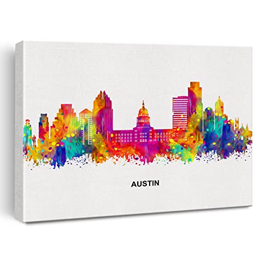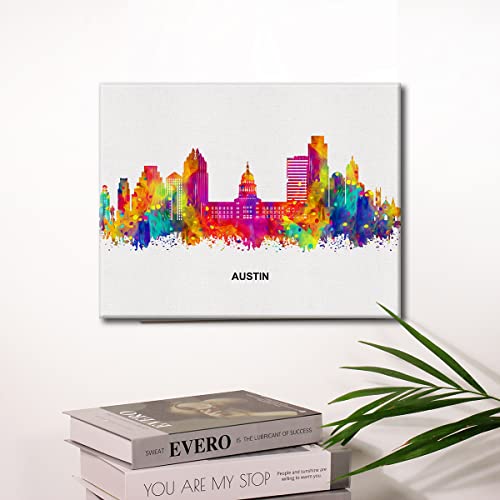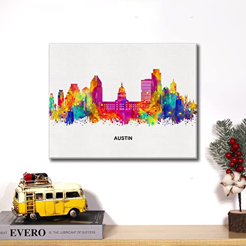 JerLoe - جيروي لوحة فنية جدارية قماشية عصرية تجريدية ملونة من سيتي سكيب اوستن، لوحة قماشية مطبوعة بتصميم اوستن تكساس، ديكور حائط للمكتب والمنزل، هدية مؤطرة مقاس 12 × 15 انش