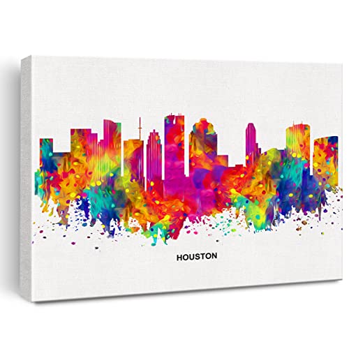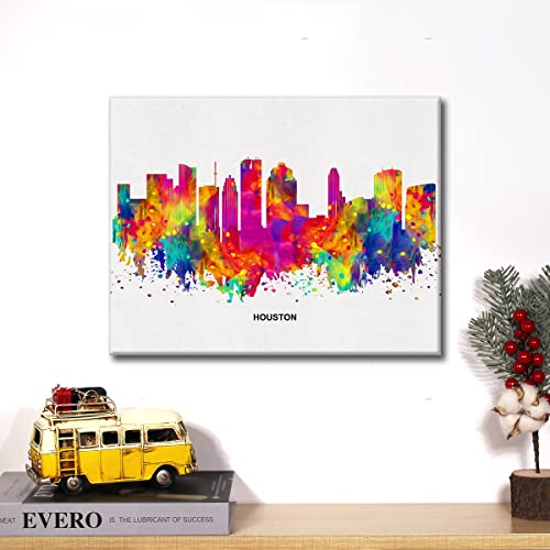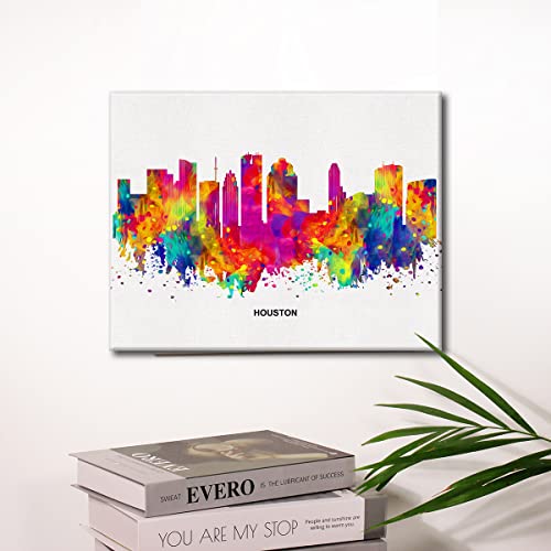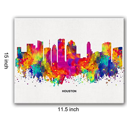 JerLoe - جيروي لوحة فنية جدارية قماشية عصرية تجريدية ملونة من سيتي سكيب هيوستن، لوحة قماشية مطبوعة هيوستن تكساس، ديكور حائط للمكتب والمنزل، هدية مؤطرة مقاس 12 × 15 انش