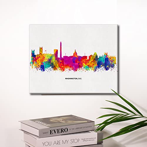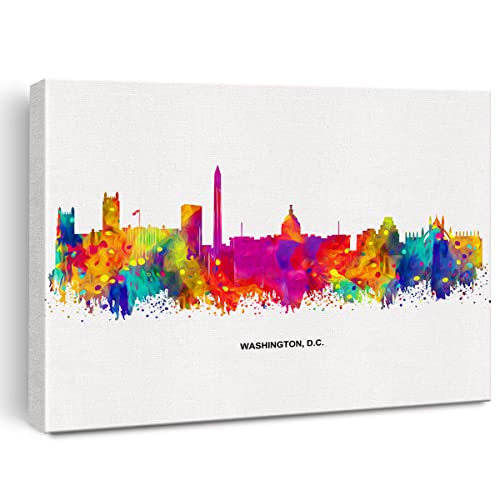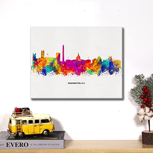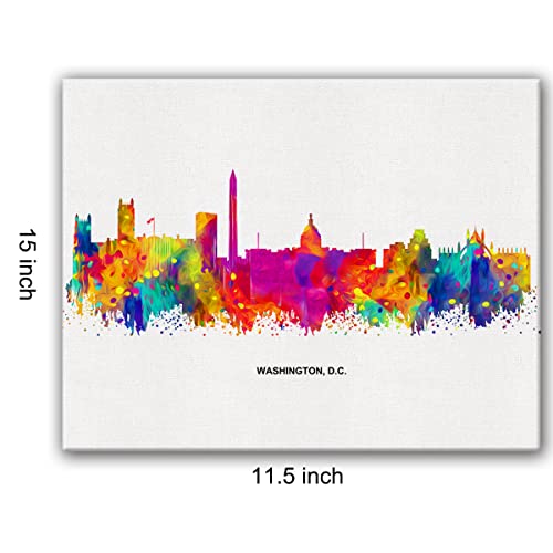 JerLoe - جيروي لوحة فنية جدارية قماشية عصرية مجردة ملونة واشنطن دي سي سكايلاين من سيتي سكيب، لوحة قماشية مطبوعة للمكتب والمنزل، هدية مؤطرة مقاس 12 × 15 انش
