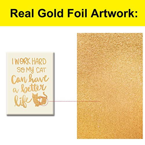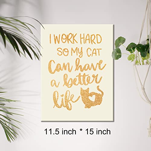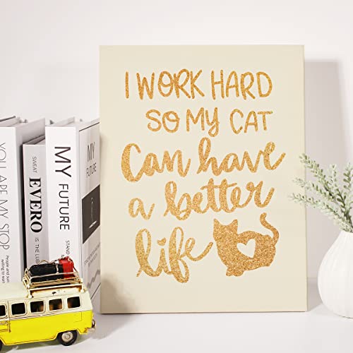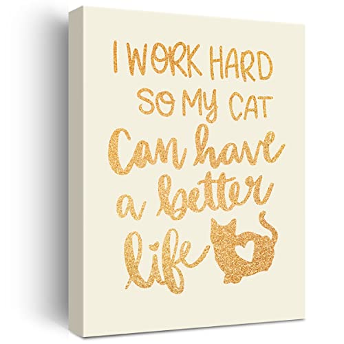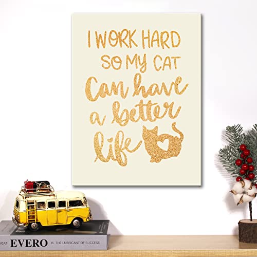 JerLoe - جيروي لوحة فنية جدارية من قماش الفويل الذهبي بتصميم قطة مضحكة بعبارة I Work Hard So My Cat Can Have a Better Life، لوحة فنية مؤطرة، هدايا ديكور المنزل، مقاس 12 × 15 انش