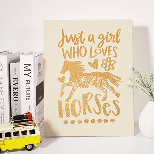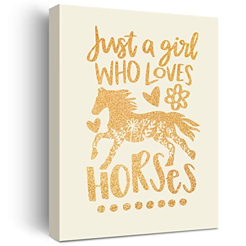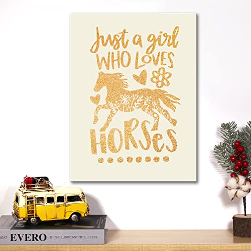 JerLoe - لوحة فنية جدارية من الفويل الذهبي لمحبي الخيول مطبوع عليها عبارة "Just a Girl Who Loves Horses"، لوحة قماشية مؤطرة لديكور المنزل مقاس 30 × 38 سم