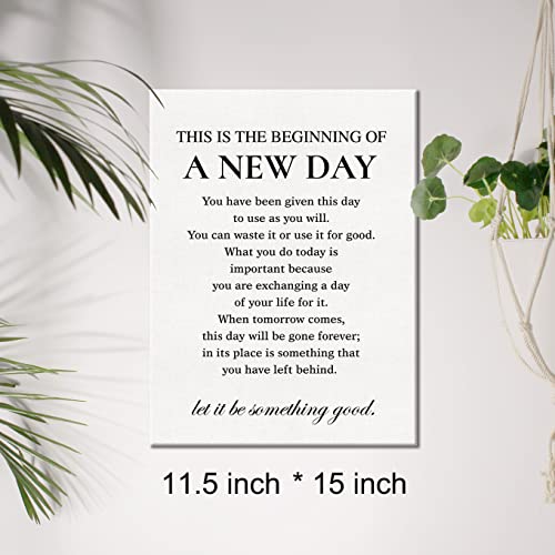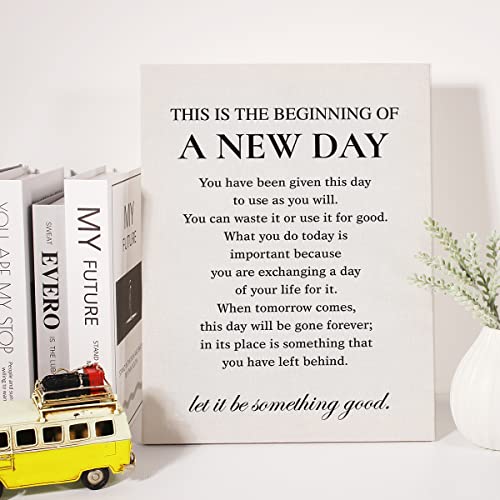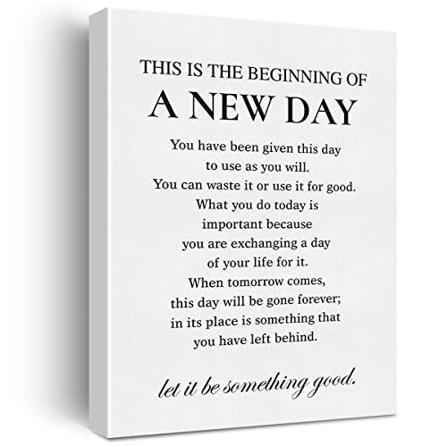 JerLoe - جيروي لوحة فنية جدارية قماشية ملهمة تحفيزية مطبوع عليها This is the Beginning of a New Day ايجابية للمكتب والمنزل وديكور الحائط هدية مؤطرة 12 × 15 انش