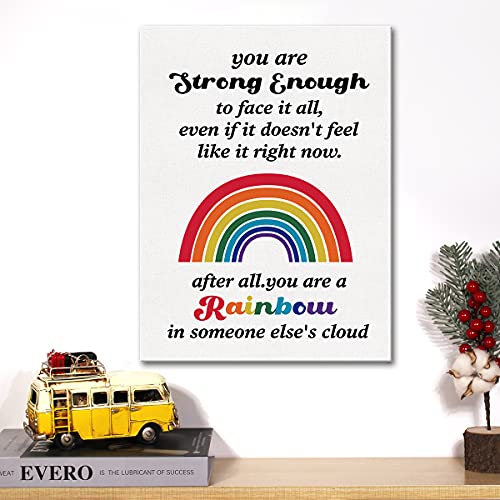 JerLoe - جيروي لوحة فنية جدارية قماشية ملهمة تحفيزية مطبوع عليها You are a Rainbow in Someone else's Cloud لوحة قماشية ايجابية لديكور الحائط هدية تشجيع 12 × 15 انش