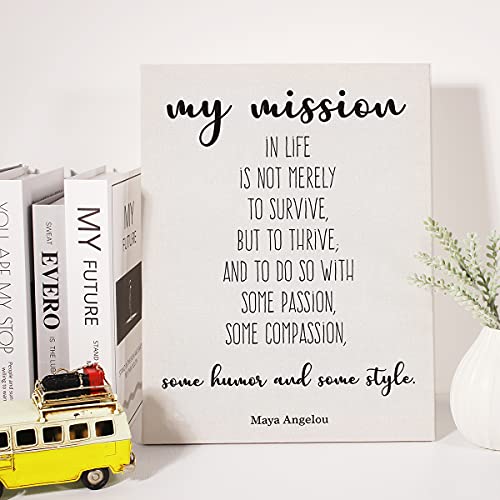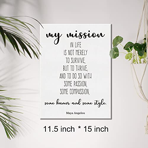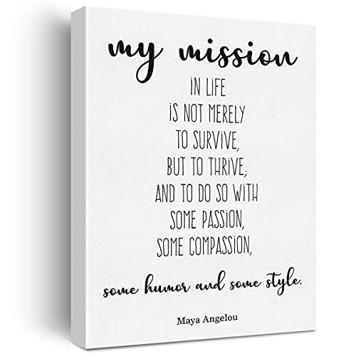 JerLoe - لوحة فنية جدارية قماشية ملهمة My Mission in Life is Not Just to Survive But to Thrive مطبوعة باقتباس مايا انجيلو لوحة قماشية ادبية لديكور حائط المنزل هدية مؤطرة 12 × 15 انش، أبيض