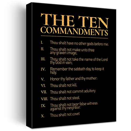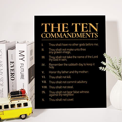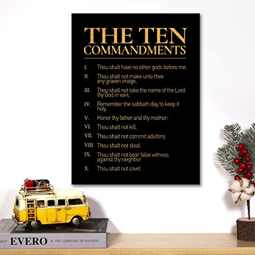 JerLoe - لوحة فنية جدارية ملهمة من الفويل الذهبي، لوحة فنية مطبوعة بعشرة وصايا ايجابية، لوحة قماشية مؤطرة، عمل فني لديكور المنزل، هدايا 12 × 15 انش، أسود