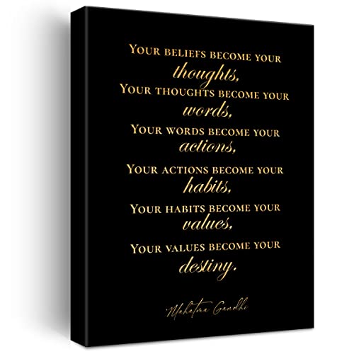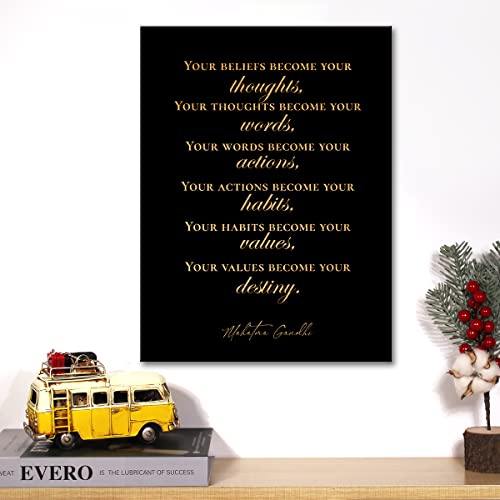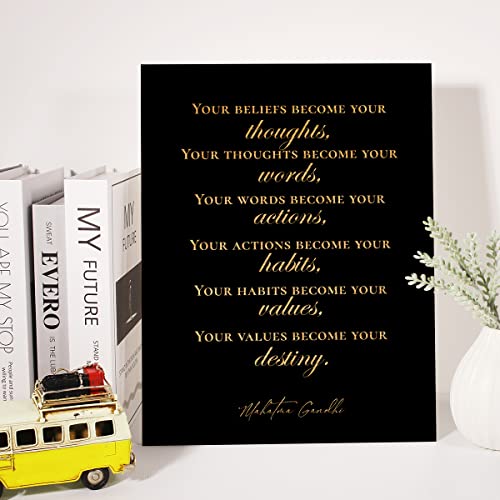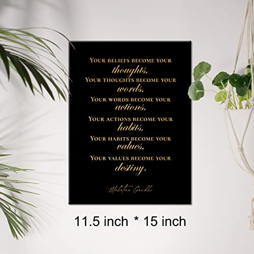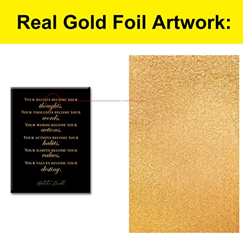 JerLoe - جيروي لوحة فنية جدارية ملهمة من رقائق الذهب من قماش القصدير ايجابي Your Beliefs Become Your Thoughts مطبوع عليها اقتباسات مطبوعة مؤطرة، لوحة فنية فنية لديكور المنزل، هدايا 12 × 15 انش