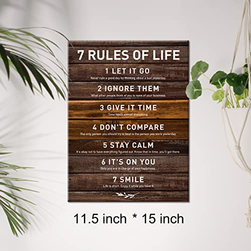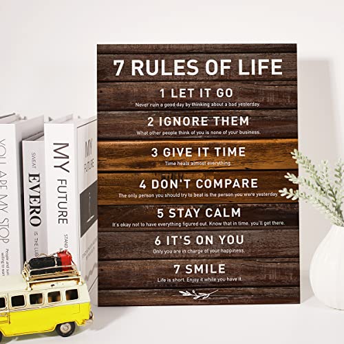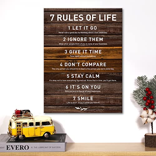 JerLoe - جيروي لوحة فنية جدارية قماشية باقتباس ملهم الحياة 7 قواعد الحياة مطبوعة ايجابية لوحة جدارية مؤطرة هدية تحفيزية 12 × 15 انش