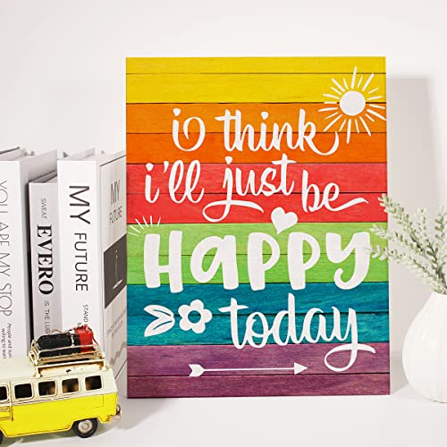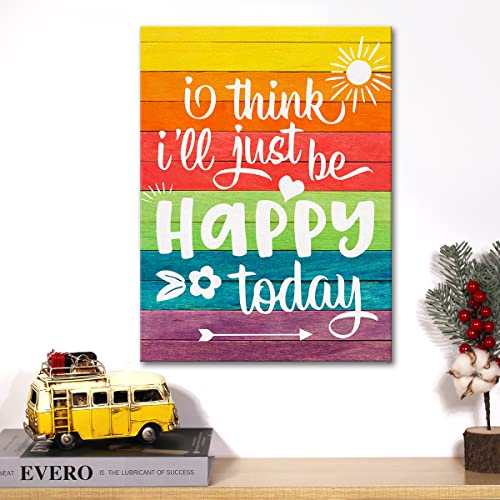 JerLoe - لوحة فنية جدارية قماشية باقتباس ملهم بعبارة «I Think I'll Just be Happy Today» ايجابية مؤطرة هدية تحفيزية 12 × 15 انش من جيروي متعدد الألوان