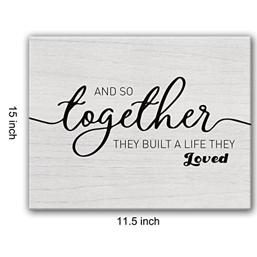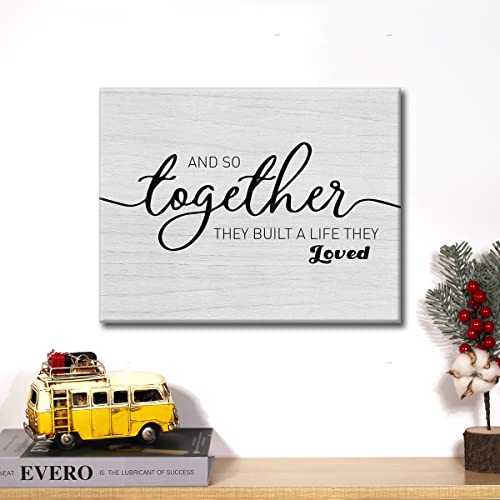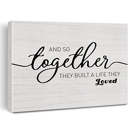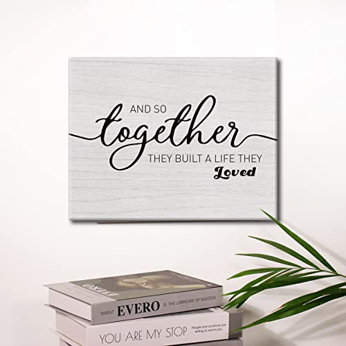 JerLoe - جيروي لوحة فنية جدارية من القماش باقتباس ملهم لبيت المزرعة وهكذا Together They Built a Life Loved قماشية مطبوعة ايجابية لتزيين الحائط هدية مؤطرة مقاس 12 × 15 انش أبيض