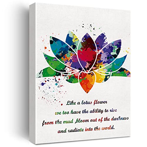 JerLoe - لوحة بألوان مائية جدارية من قماش الكانفس مؤطرة مزينة باقتباس بعبارة «Just Like the Lotus» لديكور الحائط والهدايا، مقاس 29× 38 سم، من جيرليو