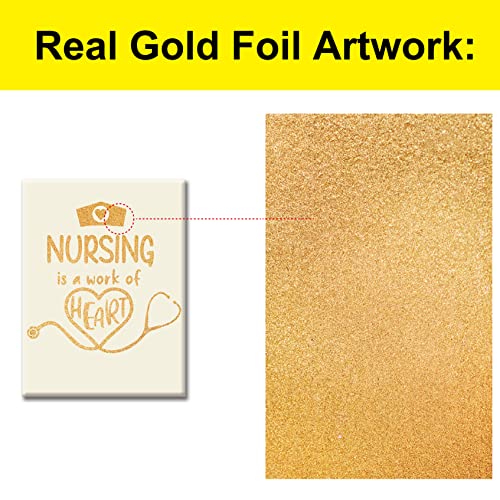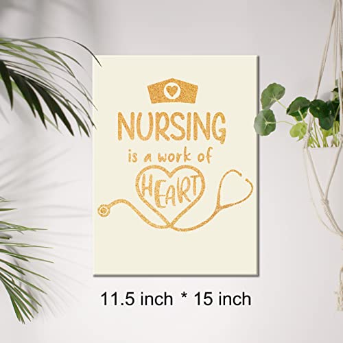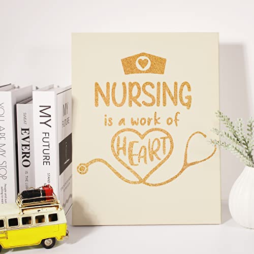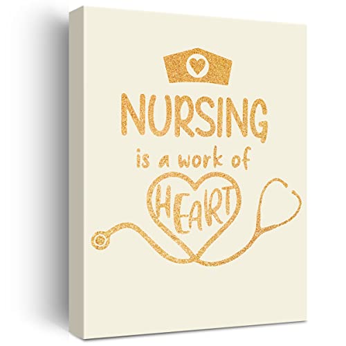 JerLoe - جيروي لوحة فنية جدارية من قماش الفويل الذهبي بطبعة عبارة «Nurse is a Work of Heart » لوحة قماشية مؤطرة لديكور المنزل مقاس 12 × 15 انش