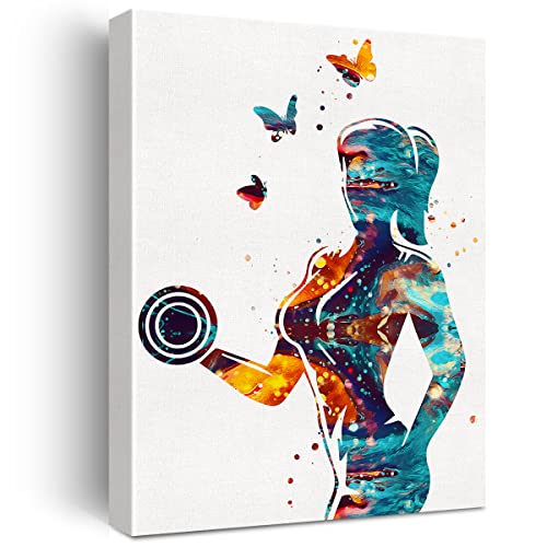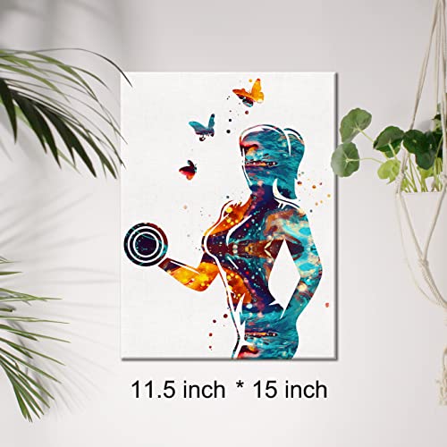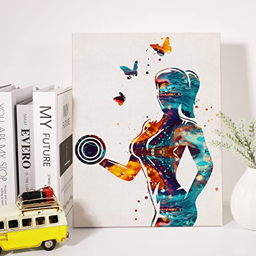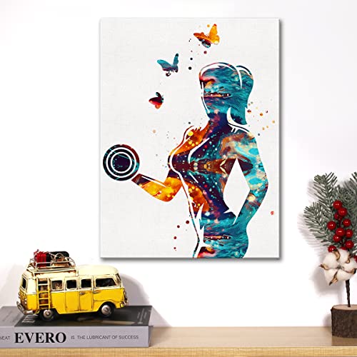 JerLoe - لوحة فنية قماشية للحائط بتصميم مطبوعة بعبارة Watercolor Fitness Girl لمستشفى الطبيب البيطري ديكور حائط المستشفى هدايا مؤطرة مقاس 12 × 15 انش متعدد الألوان