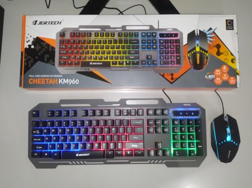 Generic - JERTECH KM 960 - كومبو كيبورد وماوس للالعاب يو اس بي - مع تأثيرات الإضاءة الرائعة - رد فعل سريع للمفاتيح - تصميم عصري وحديث باعلي جوده - الأسود، Usb