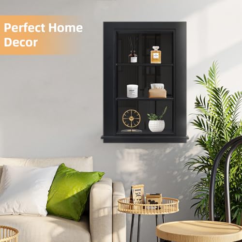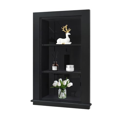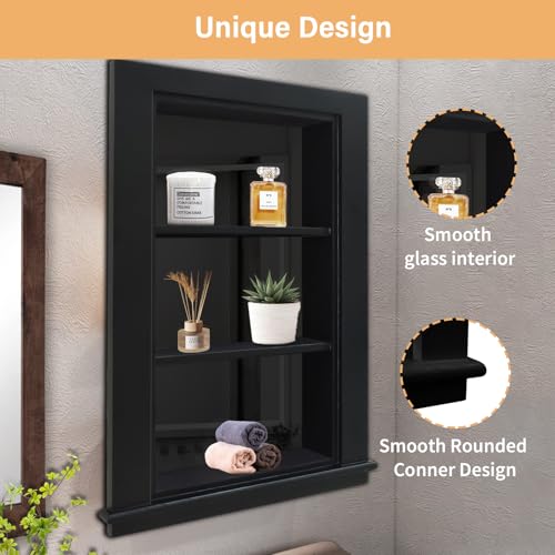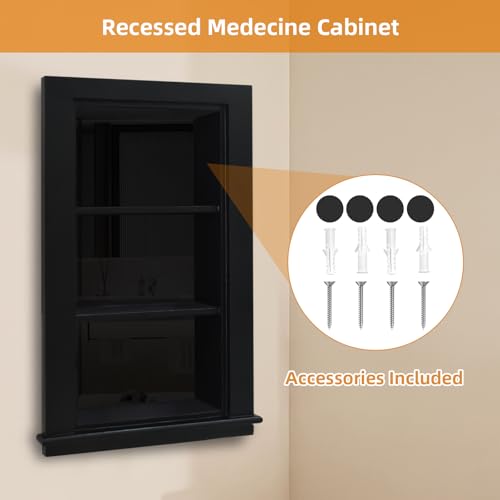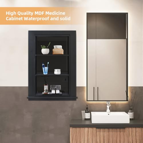 Jesantab - خزانة أدوية مجوفة مقاس 35.5 × 61 سم من جيسانتاب، خزانة حمام تثبت على الحائط، 3 رفوف مع مرآة، خزانة مستلزمات الاستحمام، أسود