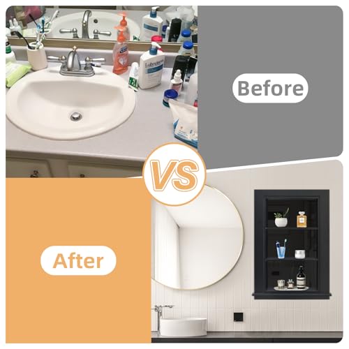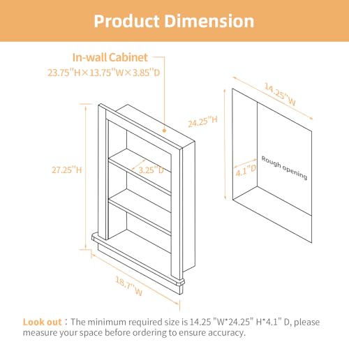 - 【سهلة التركيب】 تتميز خزانة الأدوية المجوفة بطريقتين للتركيب، إما تعليقها على الحائط أو تثبيتها داخل الحائط. طريقة التعليق، ضع الخطاف وعلقه على الحائط لإنهاء التركيب. طريقة التثبيت، قم بقياس المساحة الخاصة بك، لا حاجة إلى تجميع خزانة الأدوية، ثبتها مباشرة داخل الحائط بالمسامير لإنهاء التركيب.