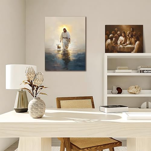 - ديكور منزلي مستوحى من الإيمان - دع هذا العمل الفني الهادف يكون تذكيرًا يوميًا بأن يسوع ينقذه ويكون دائمًا إلى جانبنا. تعبير جميل عن الإيمان والتفاني لمنزل أو كنيسة أي مؤمن.