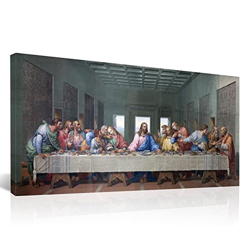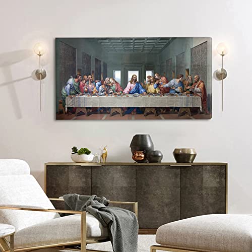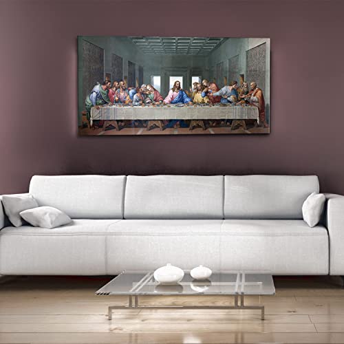 GLOKAKA - لوحة فنية جدارية قماشية مطبوعة بعبارة The Last Supper تاليف ليوناردو دافنشي الشهيرة كبيرة ممتدة لغرفة الطعام والمطبخ وغرفة المعيشة عمل فني يسوع 01 متعدد الألوان