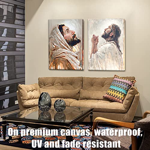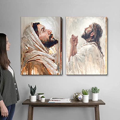 - 🎁صور يسوع للحائط: 24 انش عرض × 16 انش ارتفاع (12 انش عرض × 16 انش ارتفاع × قطعتان)، لوحة فنية جدارية جاهزة للتعليق.