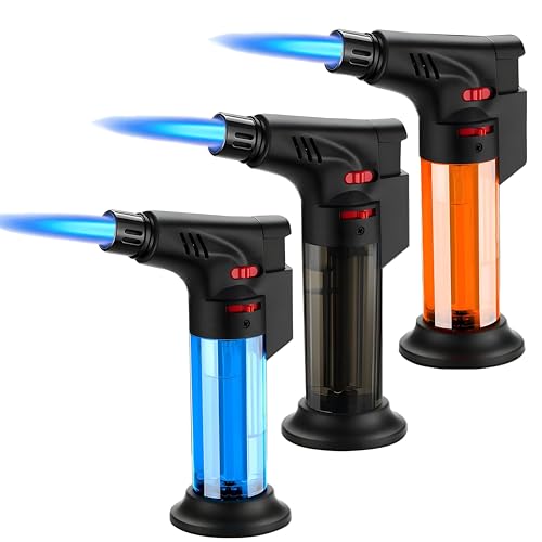 Daga - ولاعة بلهب نفاث تعمل بغاز البوتان وقابلة لإعادة الملء مع ارتفاع لهب قابل للتعديل وخزان وقود شفاف لسهولة المراقبة مناسبة للتخييم والشواء وإضاءة الشموع، 3 قطع