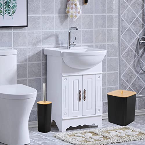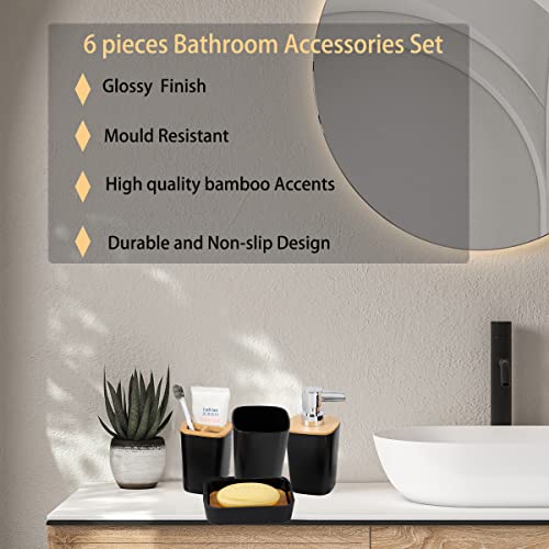 JETAINE - طقم اكسسوارات حمام من البامبو والبلاستيك بلمسة مطفية بتصميم عصري يحتوي على سلة مهملات وكوب لحامل فرشاة الأسنان وصبانة وموزع صابون من جيتاين، 6 قطع