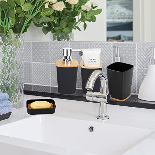 - 【تصميم أنيق】مصنوعة من اللونين الأسود والخشبي، وتتميز بسطح أملس للغاية ويمكنها الحفاظ على حمامك نظيفًا ومرتبًا ومنظمًا. تضفي إكسسوارات مجموعات الحمام هذه لمسة أنيقة على حمامك بالكامل. تأتي هذه المجموعة معبأة بشكل جيد، لذا لا تقلق من عدم وصولها بأمان دون تلف. يُسهل التصميم القابل للفصل لطبق الصابون من مهمة تنظيفه. مثالية كهدية بمناسبة الانتقال إلى منزل جدي وبمناسبة الزفاف وعيد الميلاد وهدية للأم.