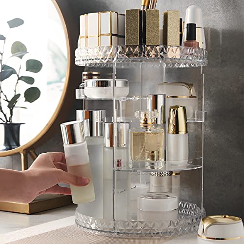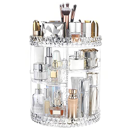 Jetcloud - منظم مكياج دوار 360 درجة مكون من 3 طبقات مع مساحة تخزين من جيت كلاود، صندوق عرض مستحضرات التجميل بسعة كبيرة، صندوق شفاف لخزانة الملابس والحمام والعناية بالبشرة وأحمر الشفاه وفرش المكياج