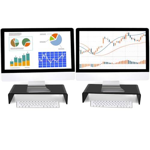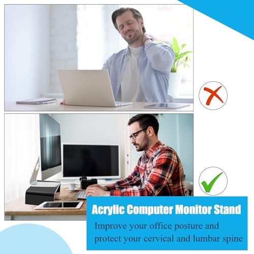 - محتويات العبوة: قطعتين من حامل شاشة للمكتب من الاكريليك، بالمقارنة مع حامل سطح المكتب التقليدي، فإن ارتفاع حامل شاشة الكمبيوتر أعلى، ويبلغ ارتفاع حامل الاكريليك الشفاف حوالي 7.6 سم ويتوافق مع مستوى عينك، ويساعدك على تقليل ضغط الرقبة والعين وجعل مكان العمل الخاص بك أكثر راحة.