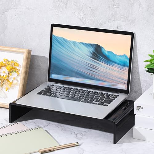 Jetec - حامل شاشة اكريليك من جيتيك من قطعتان، حامل شاشة اكريليك لسطح المكتب لعرض مقاطع الفيديو، رف مكتب حامل للاب توب وشاشة التلفزيون ومنظم مكتب، مناسب لمستلزمات يوم المعلم (أسود 30.48 × 20.32 × 7.62 سم)