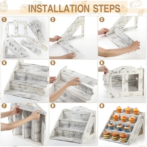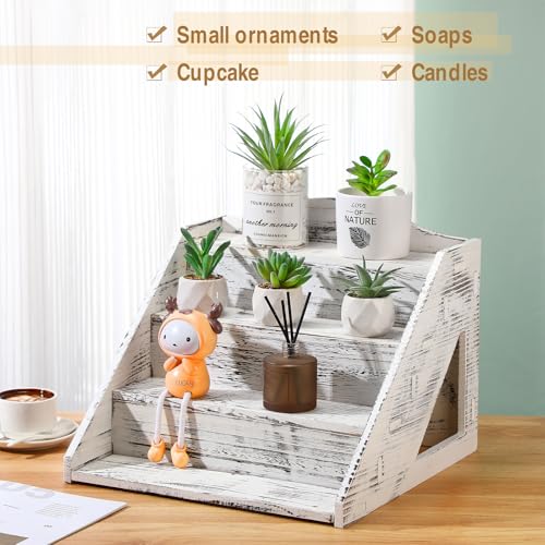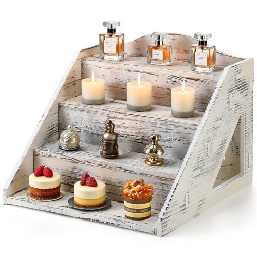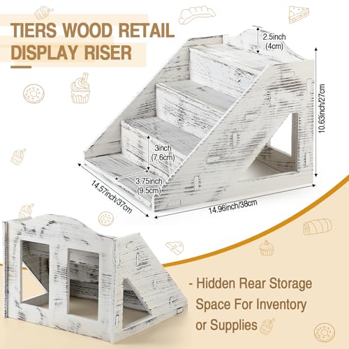 Jetec - جيتيك حامل عرض خشبي من 4 طبقات للبيع بالتجزئة، حامل للكب كيك والحلويات بتصميم ريفي للمزارعين وسوق الحرف اليدوية والشموع والصابون والعروض الخشبية المنبثقة والمتاجر والكب كيك والحلوى